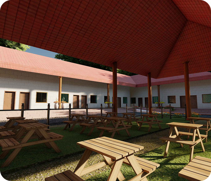 At River Edge Home, our infrastructure is meticulously designed to provide a comfortable, secure, and engaging environment for senior residents. From spacious, senior-friendly bungalows to lush outdoor areas, we ensure every facility promotes convenience and well-being. With modern amenities and safety features, residents can enjoy a home-like atmosphere enriched with opportunities for leisure and relaxation.